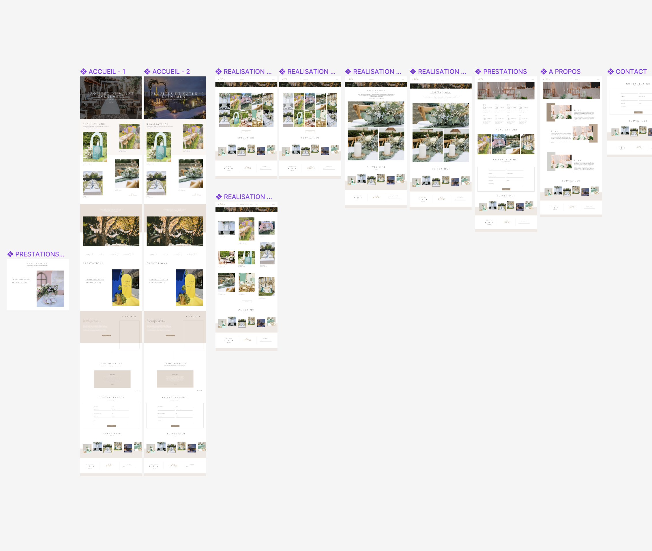 Pour la création de ce site web, j’ai suivi un processus qui a commencé par la conception des maquettes sur Figma. J’ai soigneusement élaboré la disposition de chaque élément, en prenant en compte l’ergonomie et l’esthétique. J’ai également choisi les typographies et les couleurs du site, en m’assurant qu’elles reflètent l’identité visuelle de Mjoy Event.